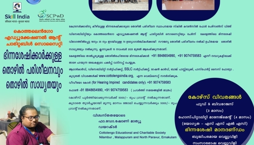 Skill Council for Persons with Disability (SCPwD) held the Convocation Ceremony in North Paravur, Ernakulam, Kerala for 70 differently abled Candidates with Locomotor Disability, Speech and Hearing Im
